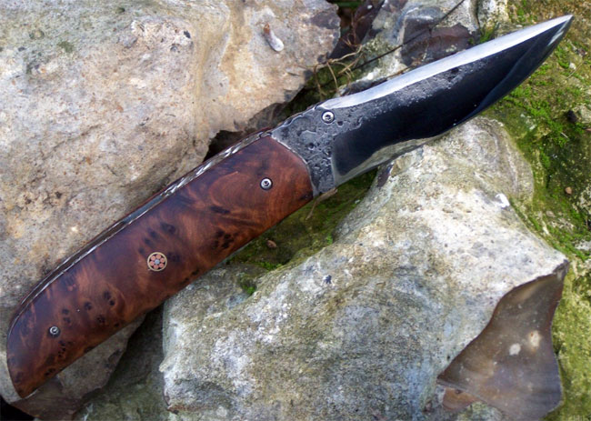 Re: 1er couteau pliant : lame en acier XC75, plaquettes en thuya