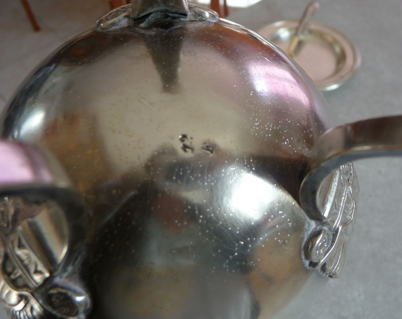 Re: Assiette, coquetier et théière en argent ou métal argenté