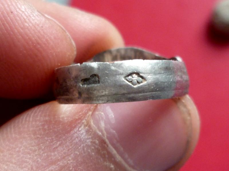 Et dans ses champs, mis à part quelques liards usés et un napoléon III dans le même état, j'ai pu trouver cette belle bague de foi/promesse du XVIIIème en argent, posée à même le sol. J'étais aux anges.