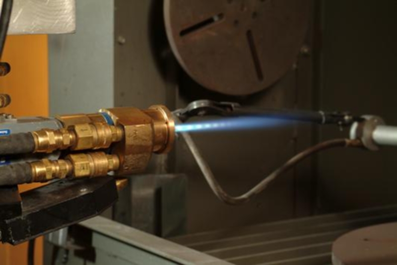 Avec de l'oxyacétylène et un tube de Delaunay convergent / divergent, on réalise une flamme supersonique (c'est pour ça qu'on voit des "diamants" qui sont des fronts de compression, dits "cônes de Mach"; et on en profite pour injecter des billes d'alliage dur sur une surface polie et sans oxydes, la poudre d'apport est obtenue par la métallurgie des poudres. On obtient une surface homogène et extrêmement dure, résistante aux haute températures et à la compression. Je pense en particulier aux Stellite(R & TM, Deloro Stellite Group), une classe d'alliages possédant en proportions très variées et étudiées du cobalt, du nickel, du fer, de l'aluminium, du bore, du carbone, du chrome, du manganèse, du molybdène, du silicium, du titane et du tungstène. Généralement, l'alliage tourne autour du cobalt, du chrome, du tungstène et du carbone. Avec ça, c'est d'une dureté et d'une performance incroyable !