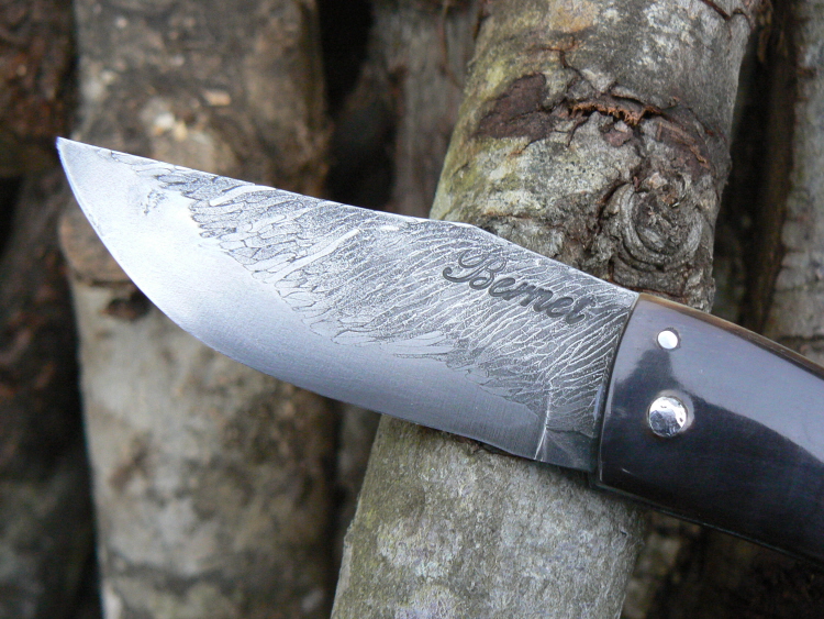 Voici mon second couteau à lame sandwich xc75 et câble à manche en bélier ; le tout pour une longueur de 19,5 cm :