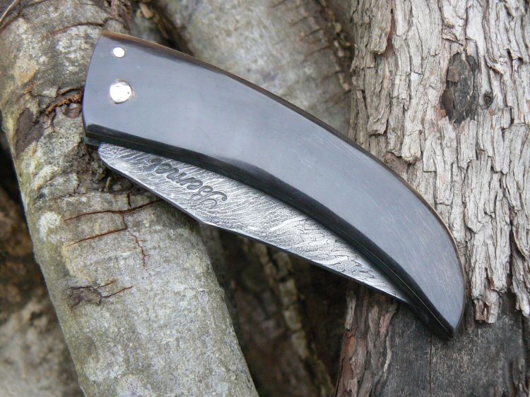 Couteau Cornicciolu à lame damas câble, manche en bélier