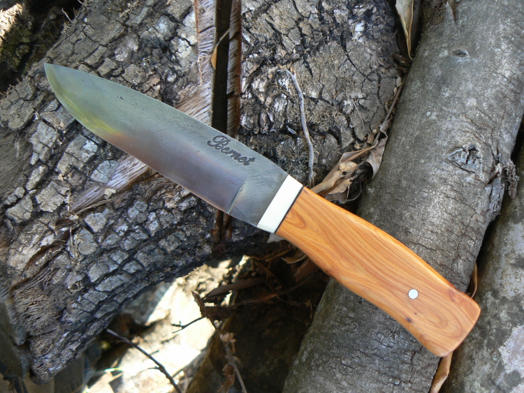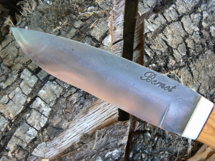 Voici un couteau de chasse à lame de 12,5 cm en sandwich ressort/câble ep.3,5 mm,