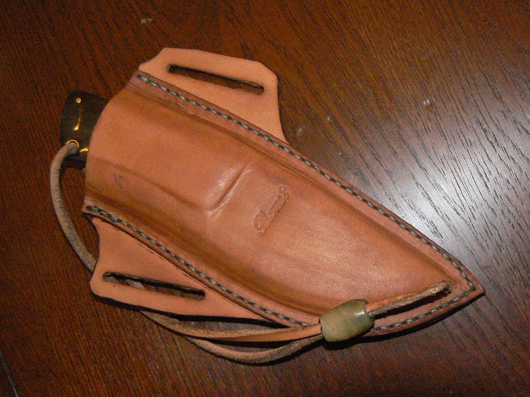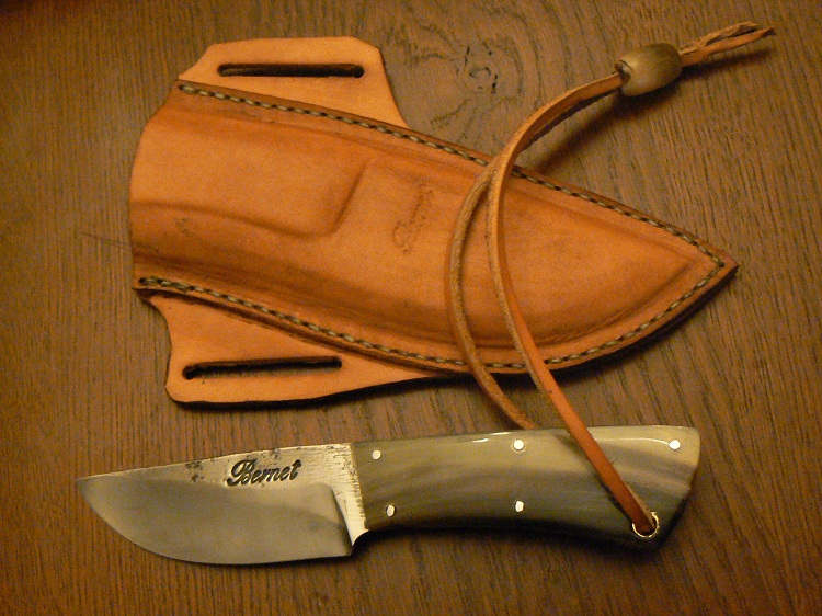 Le manche est en corne de mouflon monobloc encastré par dessous.