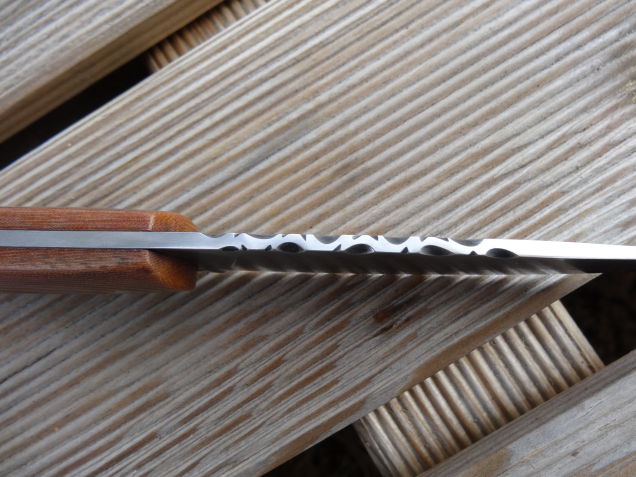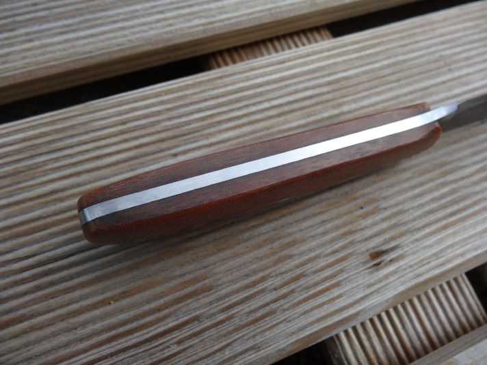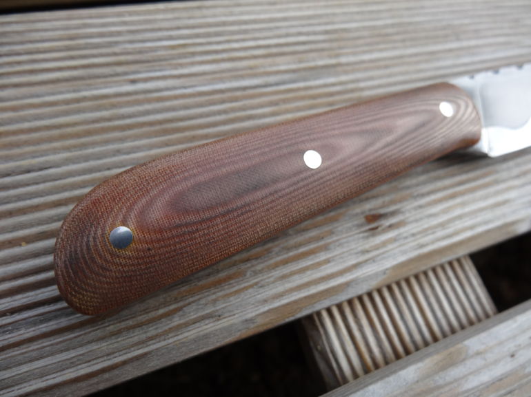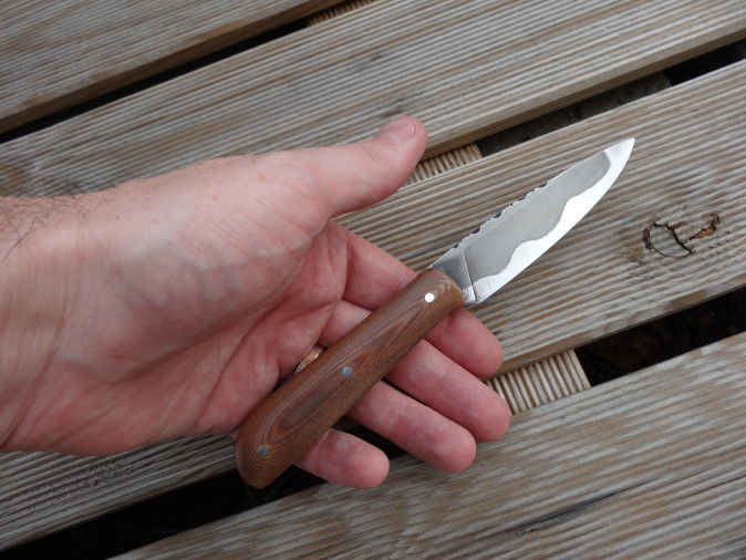Ce couteau est voulu comme étant un couteau de table. En tout cas, il peut servir à table sans trop effrayer les convives mais il se sentira tout aussi à l'aise pour aider à la préparation du repas, et ne devrait pas rencontrer trop de soucis s'il vient en complètement d'un gros fixe sur un petit bivouac.