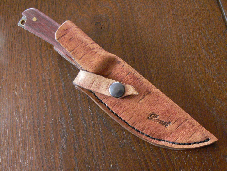 L'étui est en cuir tanné végétal de 4mm, traité façon écorce de bouleau ( du moins, j'ai essayé).