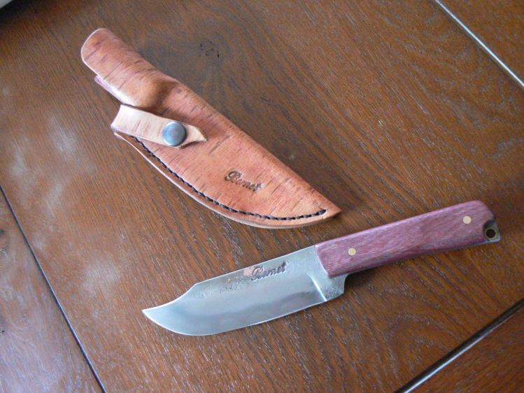 Ce couteau droit a été forgé dans un croc de motoculteur avec un manche en amarante.