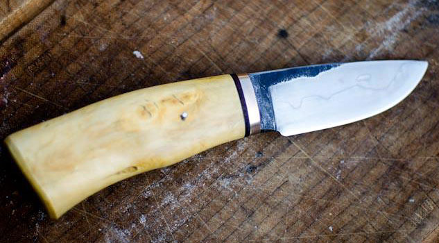 La lame est en 145SC, acier que je teste en ce moment. Elle est trempée à l'eau. Je n'ai pas de duromètre mais ça va chercher relativement haut juste après la trempe, je pense.