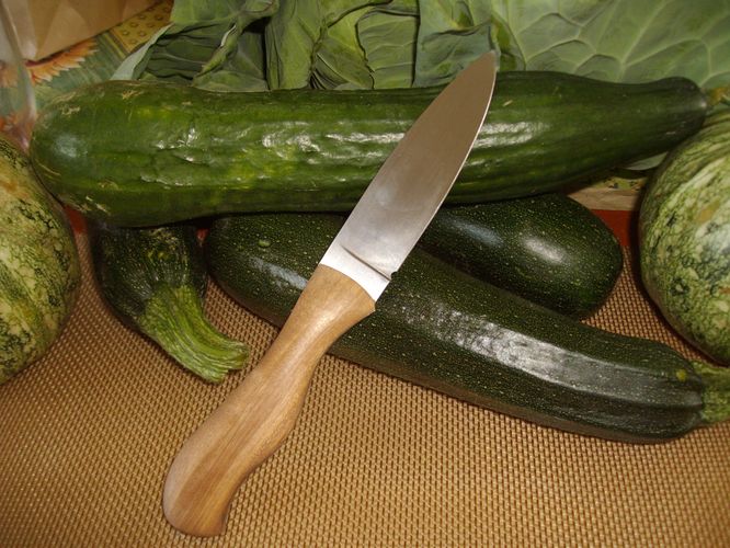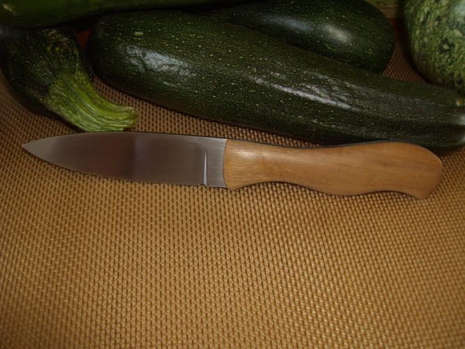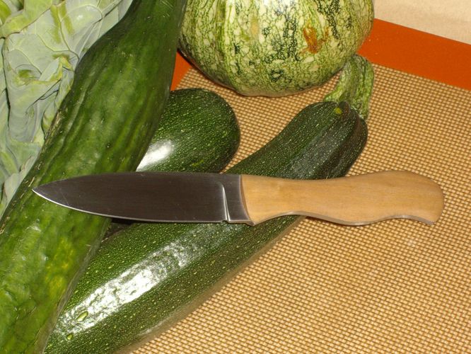 L'acier est du XC75 trempé à l'huile. Les plaquettes sont en olivier.