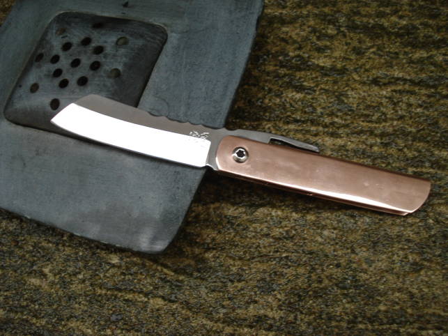 Couteau Japonais : Higonokami en XC75 à manche en cuivre