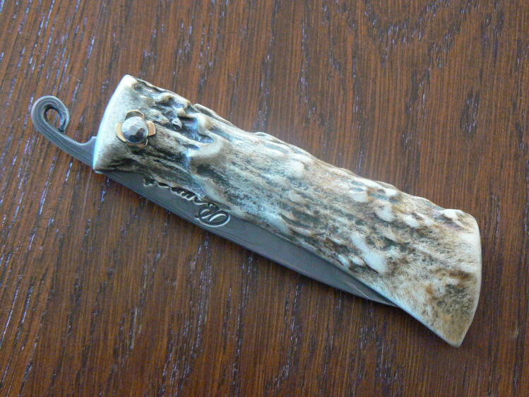Après une longue absence, je viens vous monter quelques couteaux. Voici un couteau piémontais à lame damas de mon ami christophe Ogé.