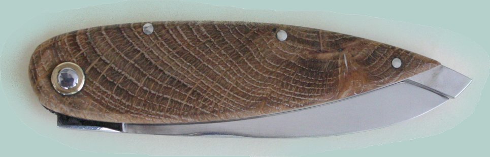 Enfin pour le coté esthétique : concernant la grosseur du manche à la jonction avec la lame, c'est vrai que le manche est un peu gros mais j'ai opté pour une étude de style un peu particulière, et j'ai favorisé cette dernière au détriment de la continuité de la ligne générale de la jonction lame/manche. Je pense qu'avec un peu plus de travail et de réflexion, il y aurait eu moyen de combiner harmonieusement les 2.