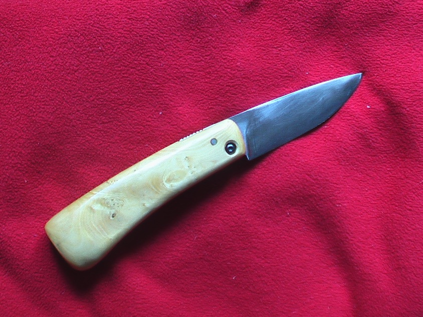 J'aurais pu (dû?) pousser un peu plus loin le polissage et éventuellement révéler la couche centrale au perchlorure, mais j'ai toujours de la peine à le faire pour des couteaux qui sont pour moi et qui vont vraiment servir.