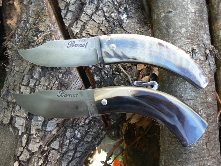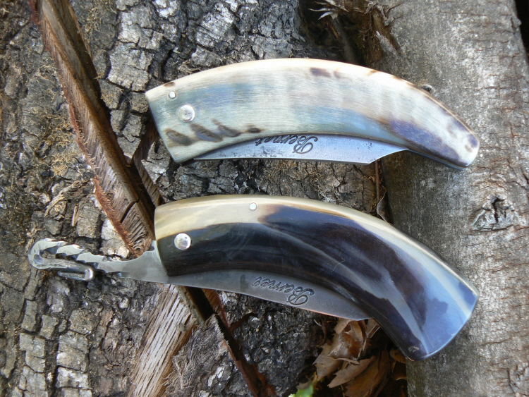 Voici 2 couteaux pliants forgés aujourd'hui à lames en XC75 et manche bélier :