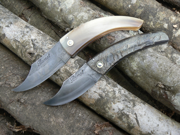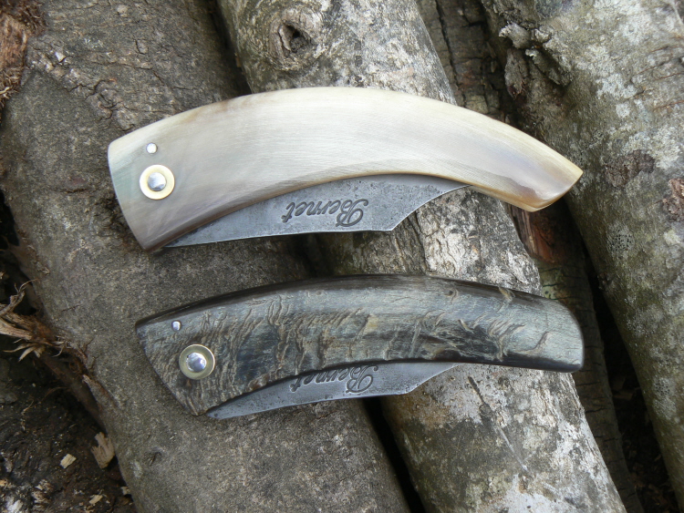 Couteaux pliants corses, manches en corne de mouflon et bouc
