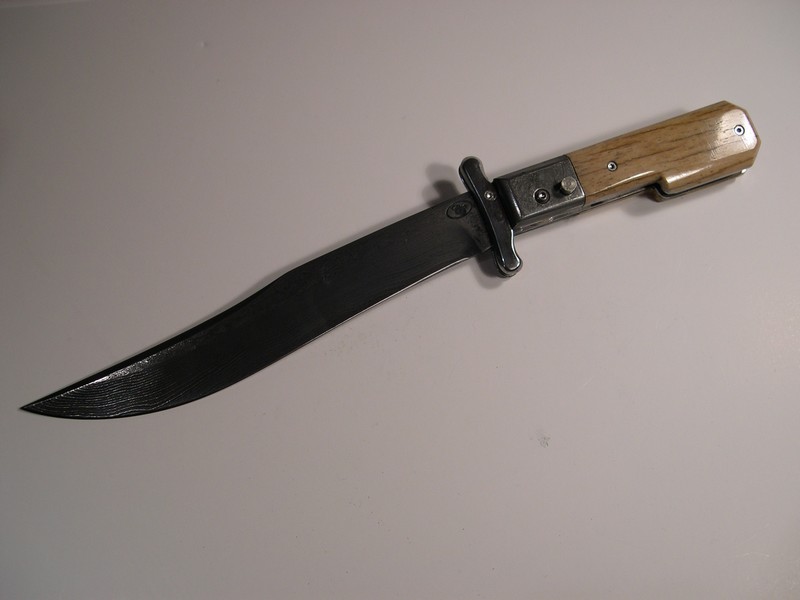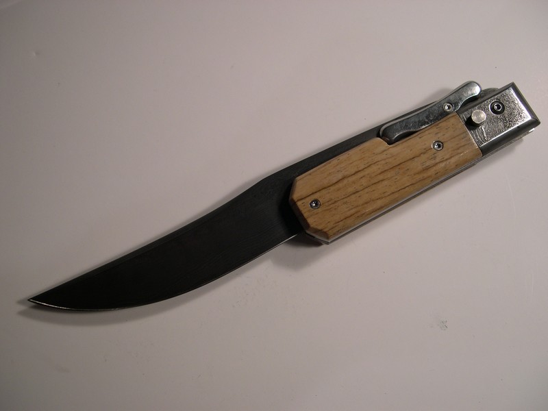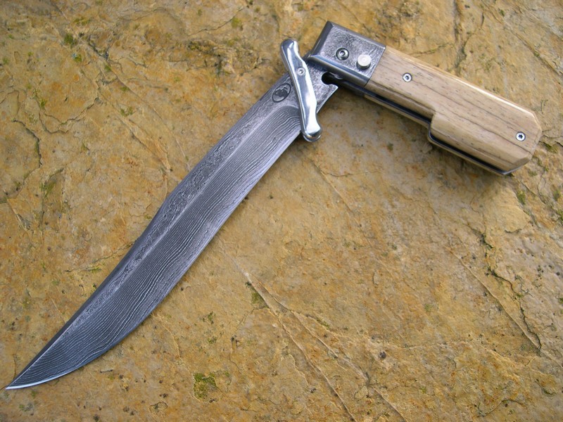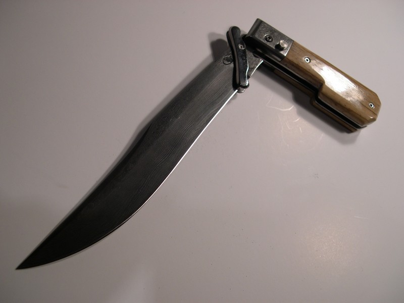 Voilà, c'est chose faite, et j'en suis assez satisfait... de par la complexité de tous les ajustages que cela demande... l'alignement de la lame en position ouverte et fermée, le poussoir qui doit coulisser sans problème dans ces deux positions aussi, et la garde qui doit venir s'ajuster sans trop de jeu là aussi dans les deux positions !