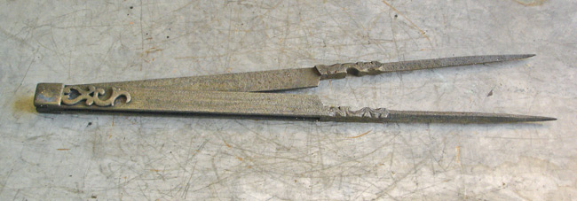 le compas après immersion. Il est recouvert d'une pellicule peu adhérente que l'on va éliminer au brossage avec une brosse métallique, puis rinçage et séchage