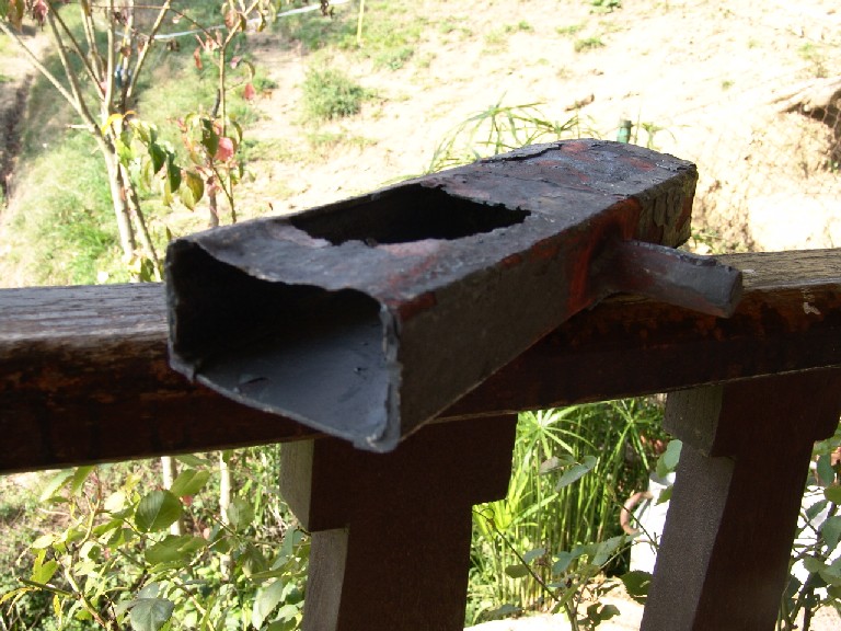 Je pense que cette forge est surtout conçue pour les maréchaux, et pour fonctionner par tous les temps sur le terrain, ce qui explique la position des tuyères : l'air arrive par l'arrière des gicleurs d'environ 0.8mm à vue de nez.