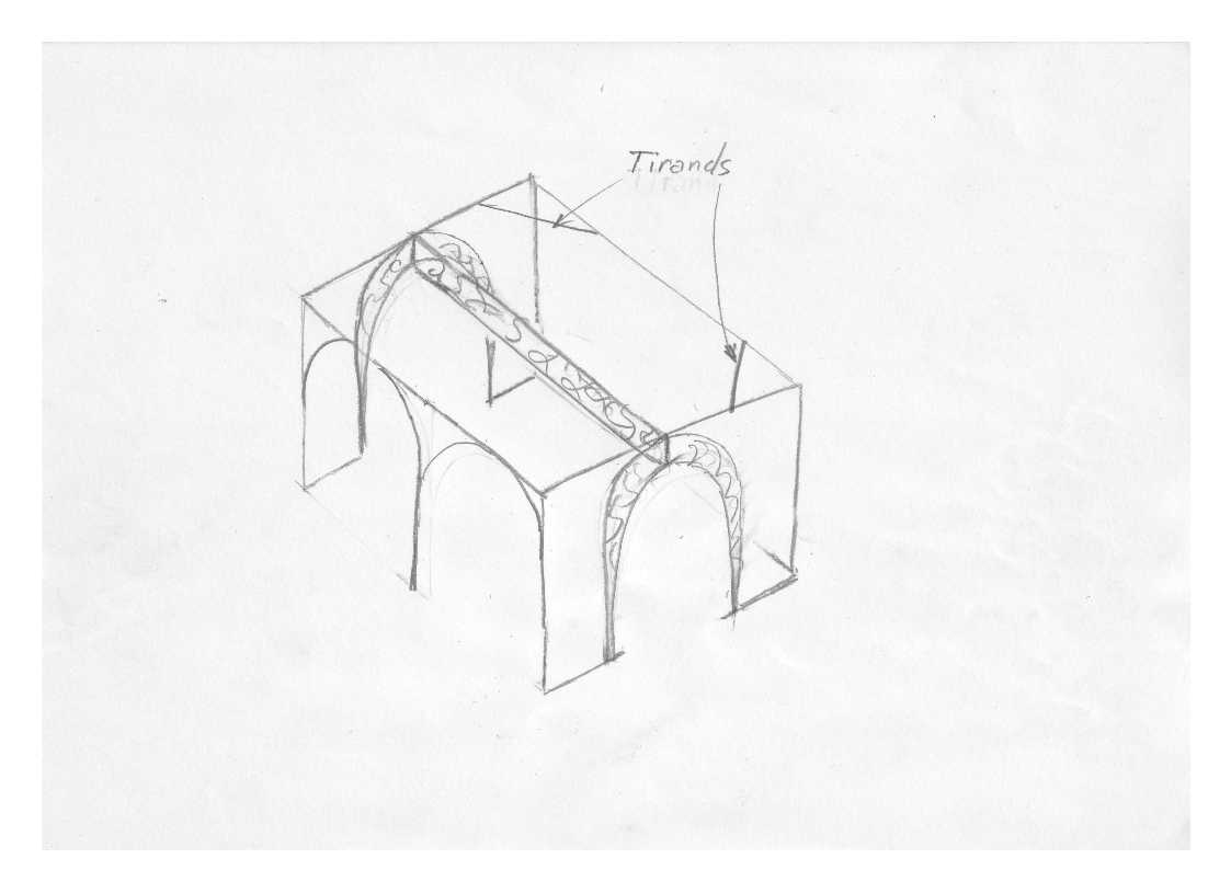 Tu réalises ensuite 4 poutres autoportantes en tendant un câble diam 5 env (en rouge) entre chaque extrémité de profil.