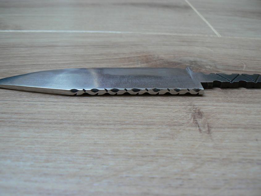 Mais ce sont les lames qui m' intéressent... J'ai donc découpé à la lime la forme de ma lame dans une barre de 440C.