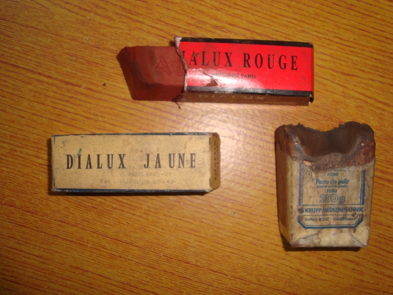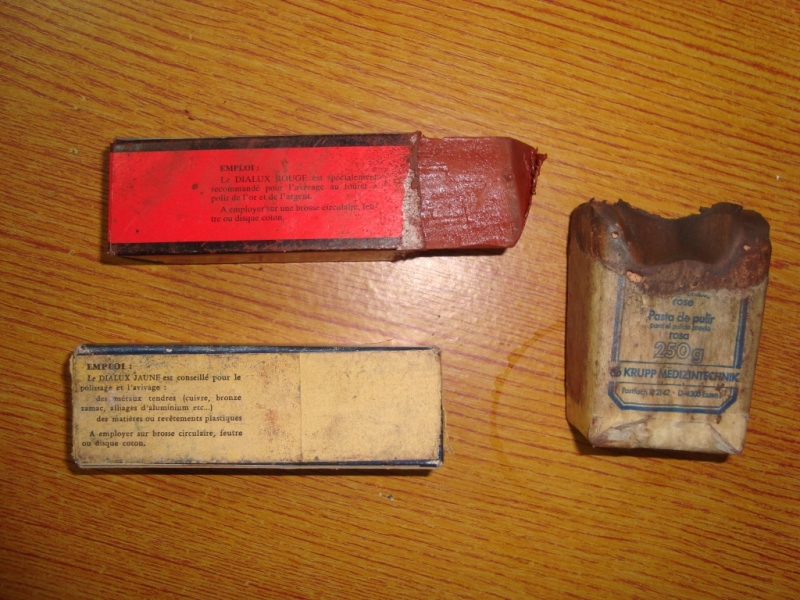 Ce qui m'a amusé, c'est qu'une pâte a été fabriquée par Krupp Medizintechnik (pâte à polir rose). Je voyais bien ce que Krupp peut réaliser, mais des pâtes abrasives à vocation médicale, eh bien on en apprend tout les jours !