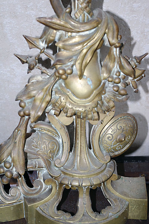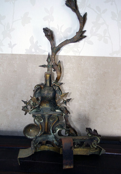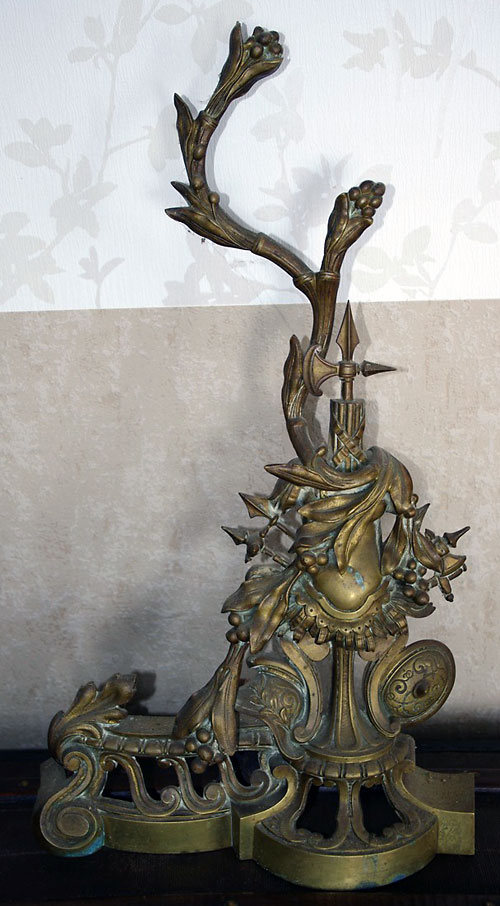 Nous y trouvons une bonne connotation gallo-romaine, mais bon.... mes recherches sont bien infructueuses pour l'instant : ancien fronton horloge, célèbre-t-il quelque chose ? Affichant cuirasse, hallebarde, casque, gui, laurier, bouclier, c'est un objet assez lourd d'une hauteur de 55 cm. :