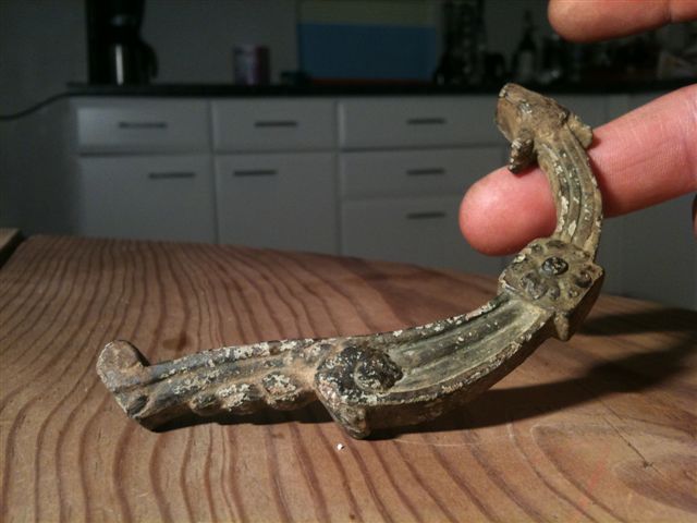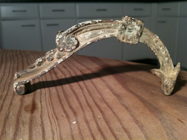 A mon avis, il s'agit d'un fragment de branche de luminaire (chandelier, lustre) ou anse de vase XIXème.