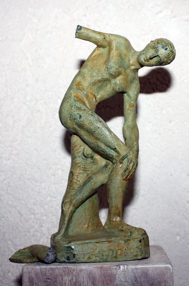 Bonjour, je viens d'acquérir une petite sculpture que je pensais être en bronze... Après une chute accidentelle sur du carrelage, le bras de mon petit discobole s'est cassé... Verdict rapide: ce n'est pas du bronze.