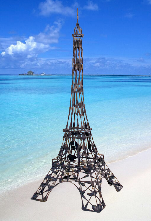 Il s'agit simplement de la tour Eiffel que tout le monde (dans les deux sens de l'expression) connait. J'ai voulu en faire mon propre remake au moment où l'identité de notre pays était sur la sellette.
