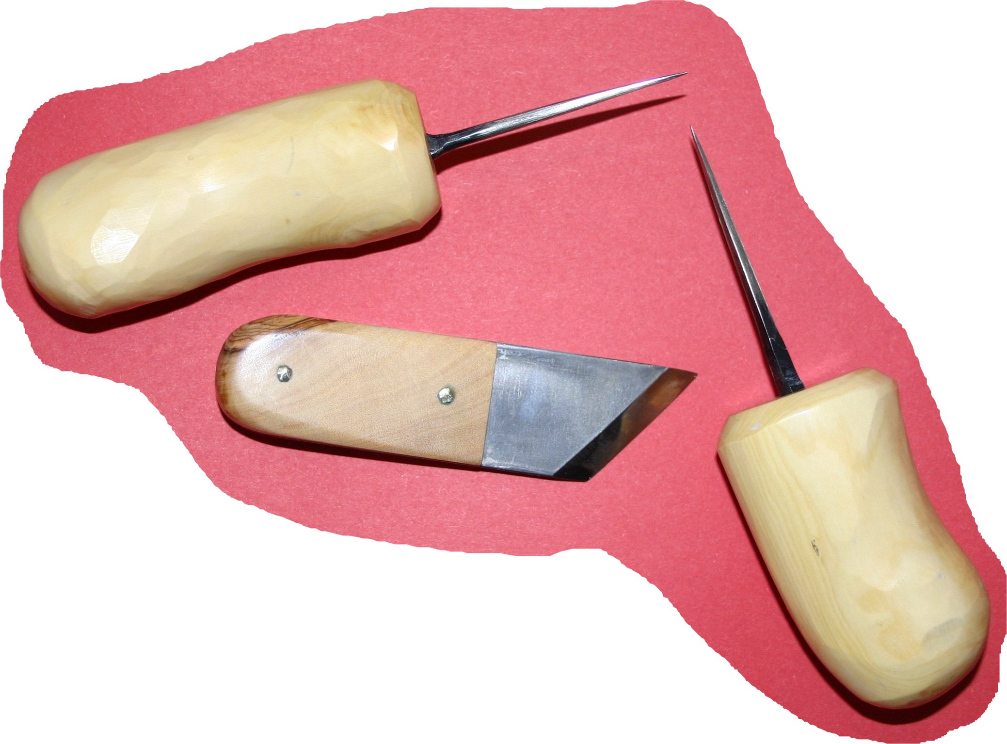 Voici un petit kiridashi en XC75 et manche olivier ainsi que 2 alènes (une ronde et une carrée) en XC75 avec un manche en buis (avec un aspect rustique dans la forme) également qui constituent un petit set pour le travail du cuir.