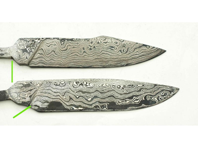 Le lopin obtenu peut être ensuite retravaillé dans l'intention de constituer un damas plus complexe (nous y reviendrons plus tard). Dans l'immédiat, nous dirons qu'il peut également être utilisé tel quel et mis en forme, par exemple pour fabriquer une lame. On pourra pour cela procéder de différentes façons :