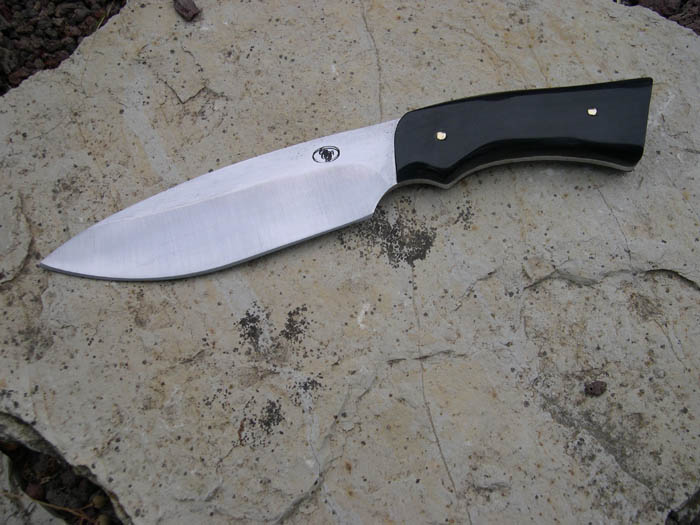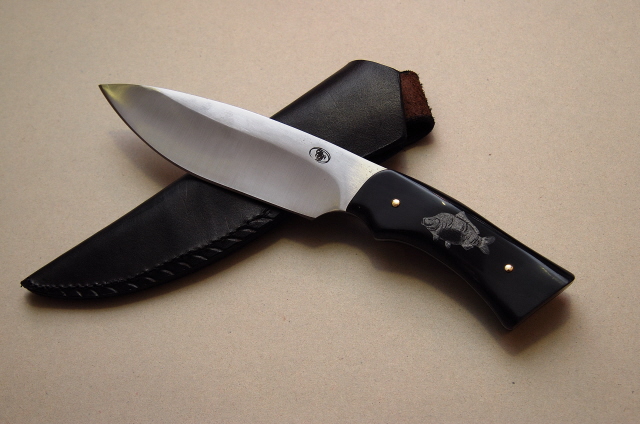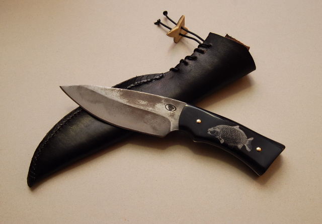 Deux couteaux fixes en aciers carbone (XC75) manche en buffle noir. Les deux sont en trempe sélective mais seul le plus petit est révélé.