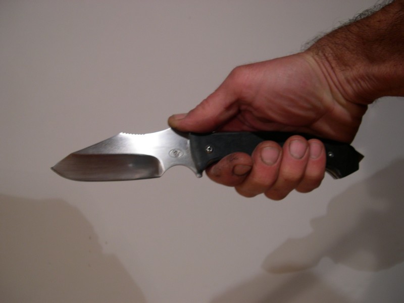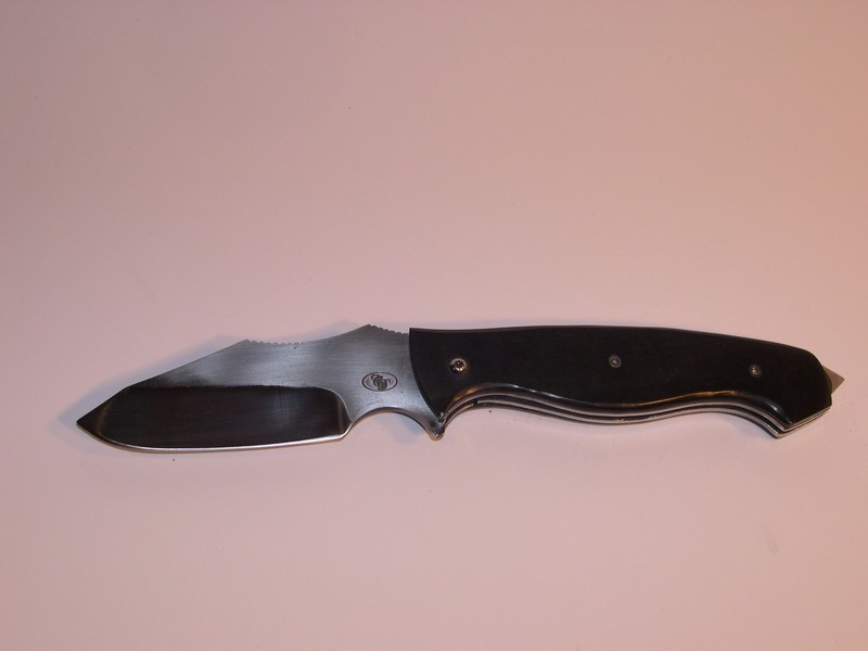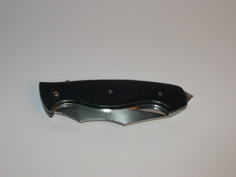 Tout inox, lame RWL34 platines Z20, plaquettes G10.... ce n'est pas du tout mon style, mais je me devais de faire quelque chose de concret pour son travail.