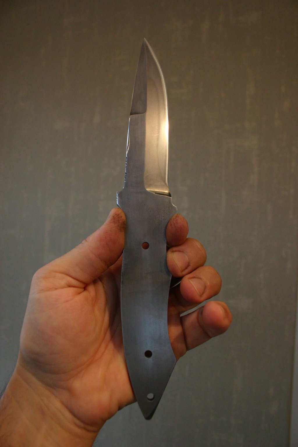 Voici une lame réalisée pour un collègue qui va venir remplacer celle de son couteau qui est dans un état irrécupérable.