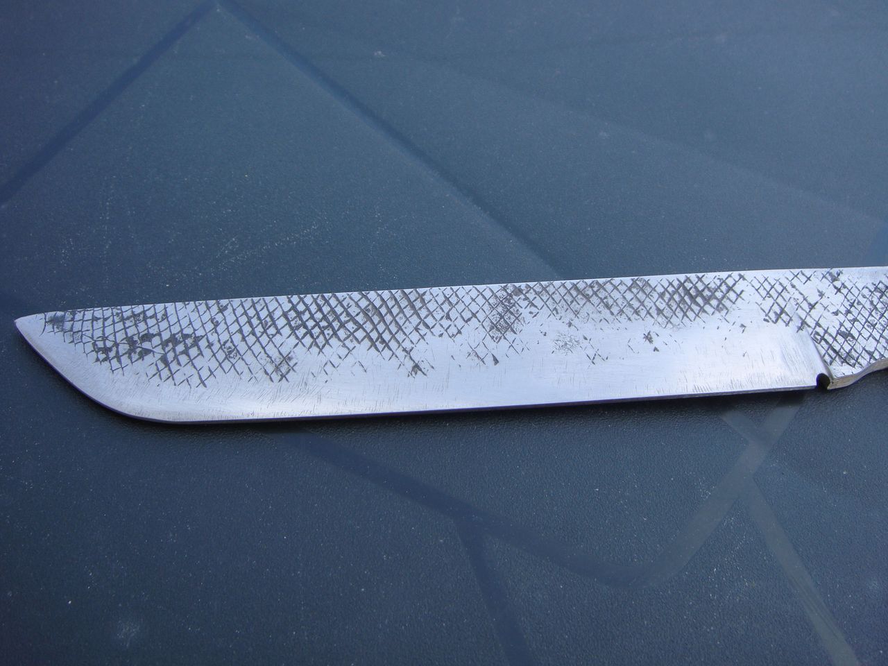 Pour ce qui est de l'épaisseur de l'émouture, l'idée est d'être déjà avant trempe sur la géométrie finale, et qu'il n'y ait plus ensuite qu'à faire du polissage, mais pas de retrait important de matière car cela demandera alors beaucoup de travail. La mise en forme et la planéité de l'émouture doivent être bien soignées, c'est autant de temps gagné ensuite.