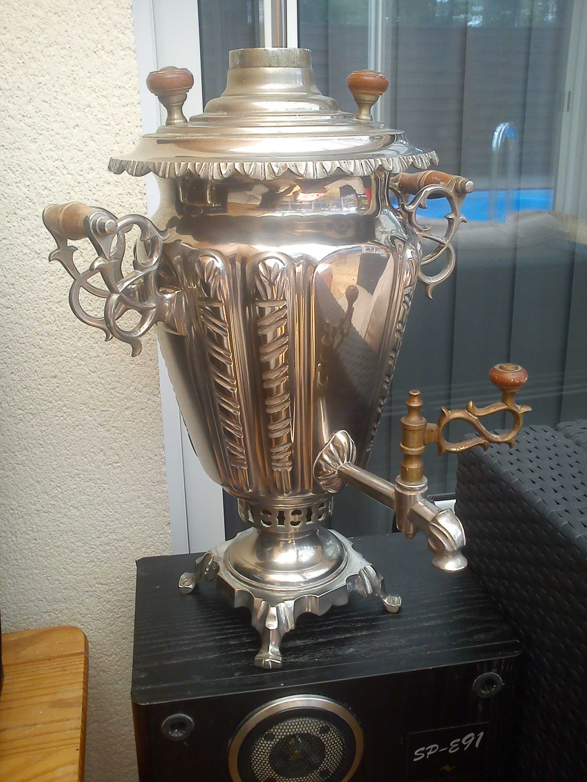 Depuis peu, j'ai récupéré un samovar, qui avait terni avec les années. Je le nettoie avec de la pierre blanche et il retrouve tout son éclat.