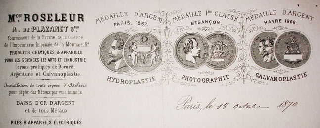 Du reste les fournisseurs des photographes à l'époque étaient les même que ceux des argenteurs-doreurs ou des galvanoplastes.