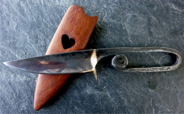 Forgé dans une vieille lime trouvée aux puces du village voisin, ce couteau est le résultat d'une émouture à la lime, trois normalisations, trempe à l'huile et revenu deux heures au four électrique.