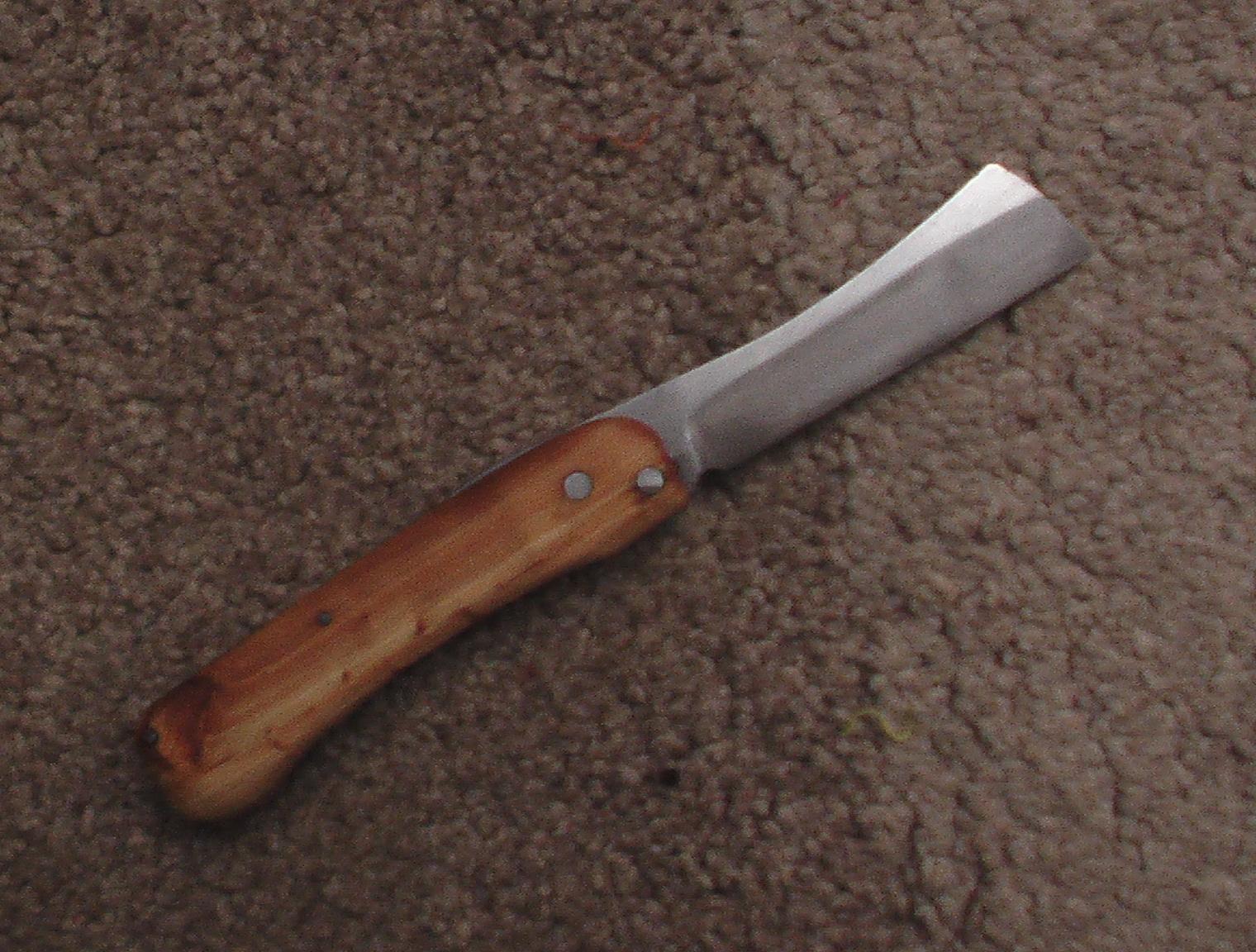 White steel, trempe à l'eau, plusieurs heures aux pierres japonaises pour le travail l'émouture, mais je suis content du résultat.