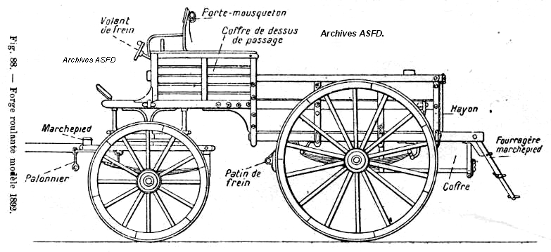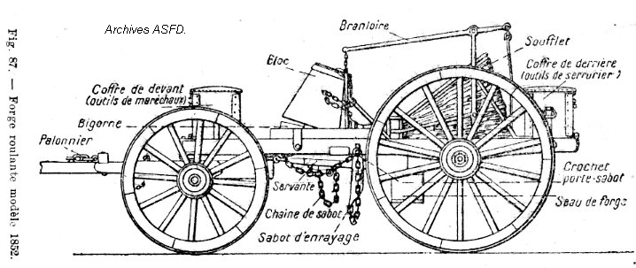 La copie n'étant pas libre de droit, je vous indique les liens pour trouver 2 plans de forges portatives et deux de forges à 3 feux :