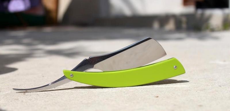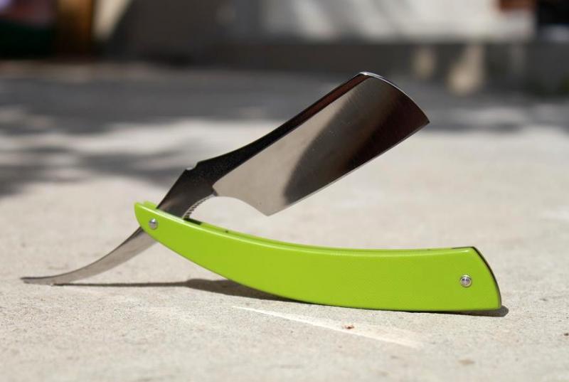 voici un gros rasoir en taille 9/8 (29,5 mm de largeur). L'émouture est 1/4 évidé avec tranchant fini au backstand à 0,06 mm.