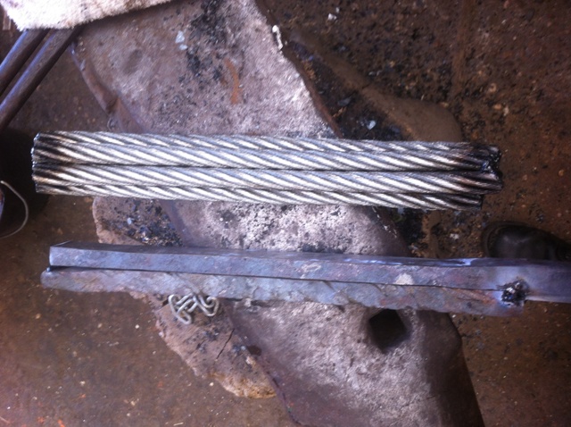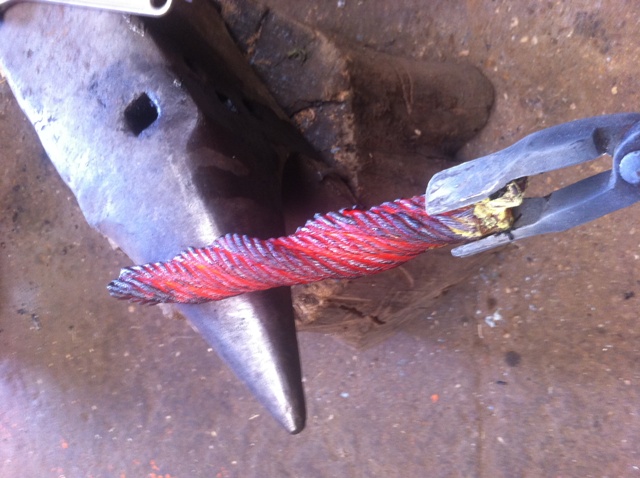 Désolé pour la répétition des opérations. Donc, la première étape : comme pour l'épée, j'ai réalisé une trousse avec 5 brins de câble (dégraissés et torsadés à chaud) :