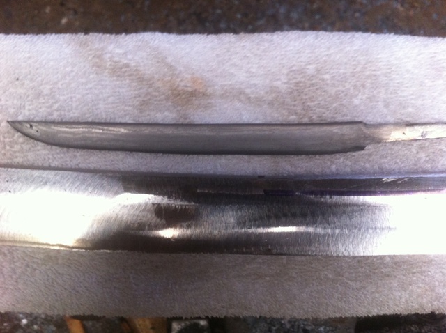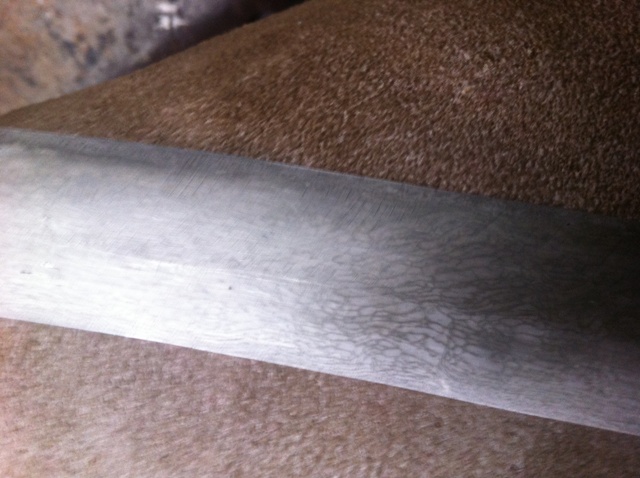 Un petit coup de meule et de perchlorure pour me faire une idée du dessin du damas :