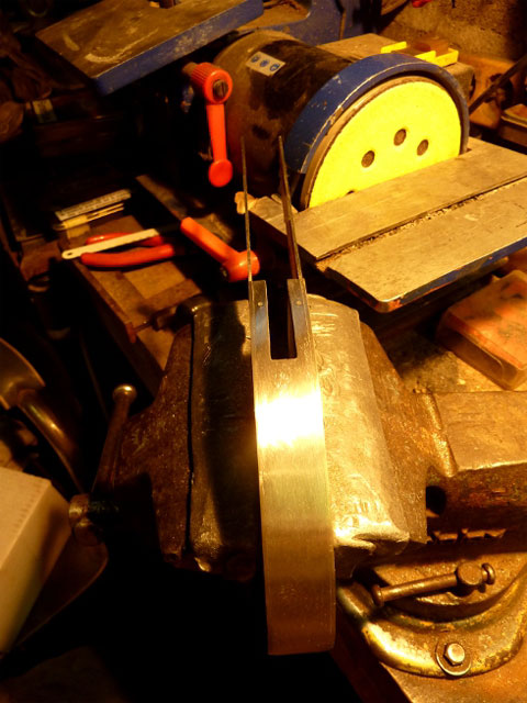 Je vais donc faire comme je pourrai avec les moyens à ma disposition (système D) : meuleuse avec disque de 8 dixièmes de mm pour la découpe des pièces, la Dremel bien sûr pour dégrossir, un poste à souder oxyacétylénique pour les brasures, un petit touret avec un coté à meuler et un coté à polir, une petite ponceuse à disque émeri, des limes et surtout de l'huile de coude.