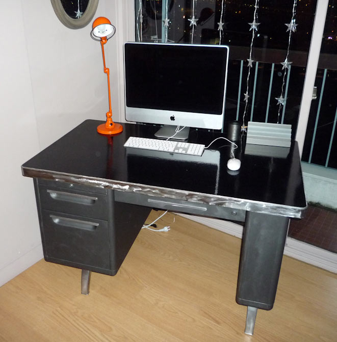 L'échange a visiblement porté ses fruits et kroon se propose de partager à présent sa technique de graphitage en présentant 7 étapes de rénovation : Nettoyage et démontage du bureau industriel, décapages mécanique et chimique, nettoyage des pieds, préparation du meuble avant peinture, mélange graphite-vernis, application des couches successives et rendu final !