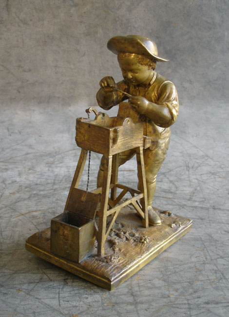 Ce n'est pas une grosse réparation mais le sujet de ce petit bronze de Charles Menne méritait un petit tour sur le forum : le rémouleur (sans sa roue), débarqué par la Poste, expédié par un client internaute.