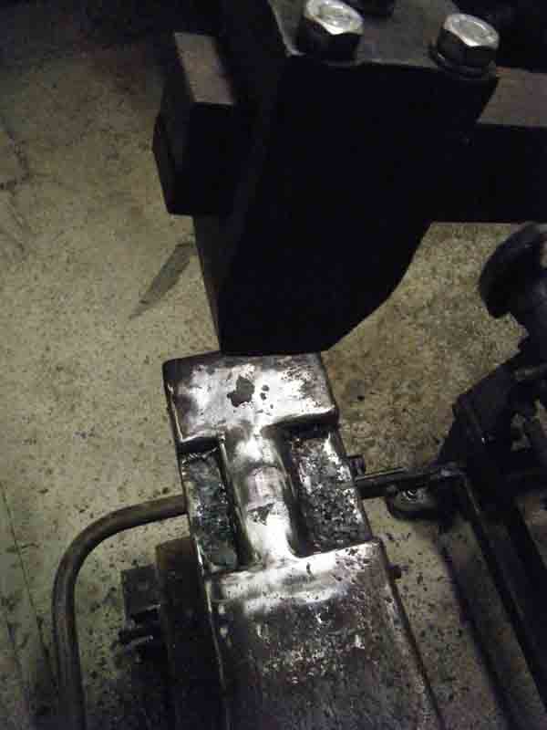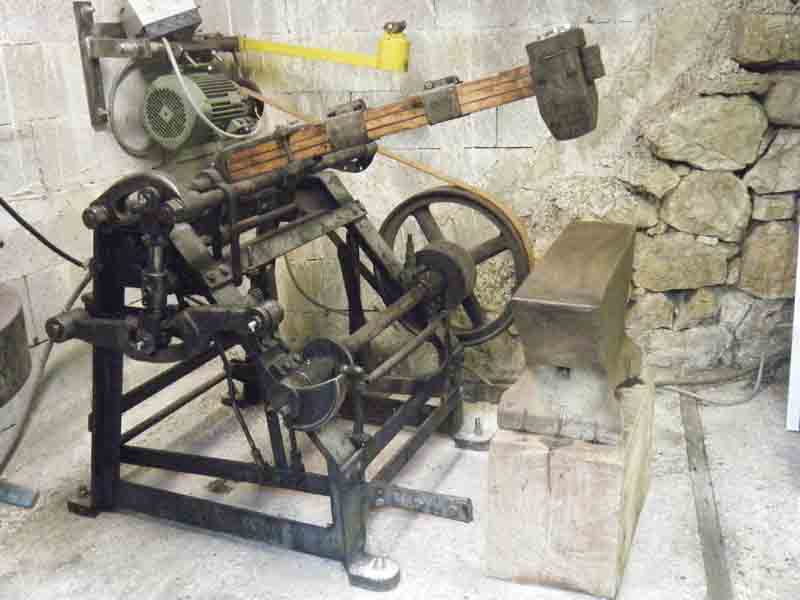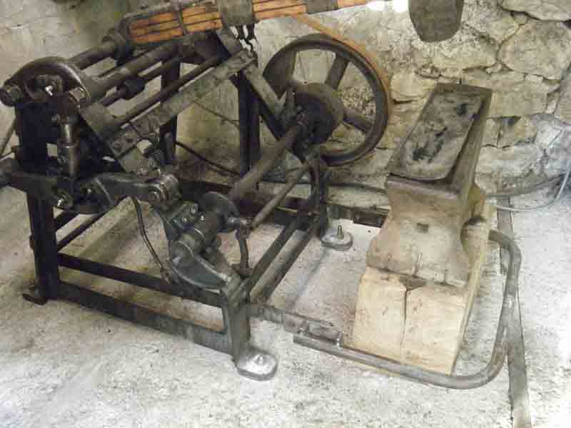 Cette machine possède un mécanisme (malheureusement incomplet) qui permettait de déplacer le bras automatiquement de manière transversale (forge de faux par ex.).