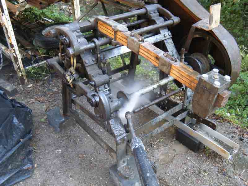 A première vue rien de grave : deux paliers a refaire, changer les lames de frêne, posé des graisseurs à la place des becs a huile et surtout refaire un embiellage cassé. Celui-ci a été maintenu en place par une sangle a cliquet, cela fonctionnait mais je dois avouer que cela heurtait mon sens de la mécanique.