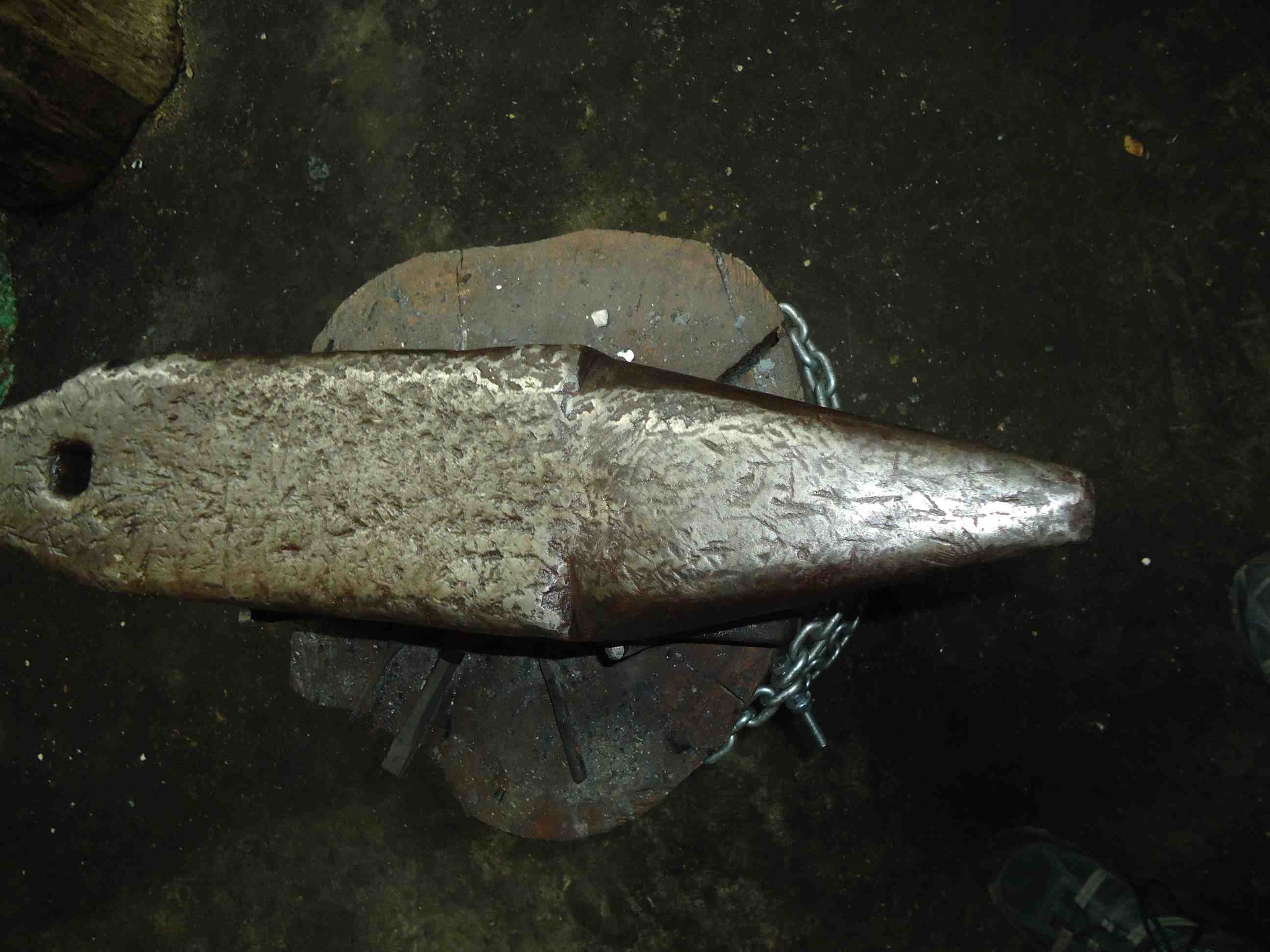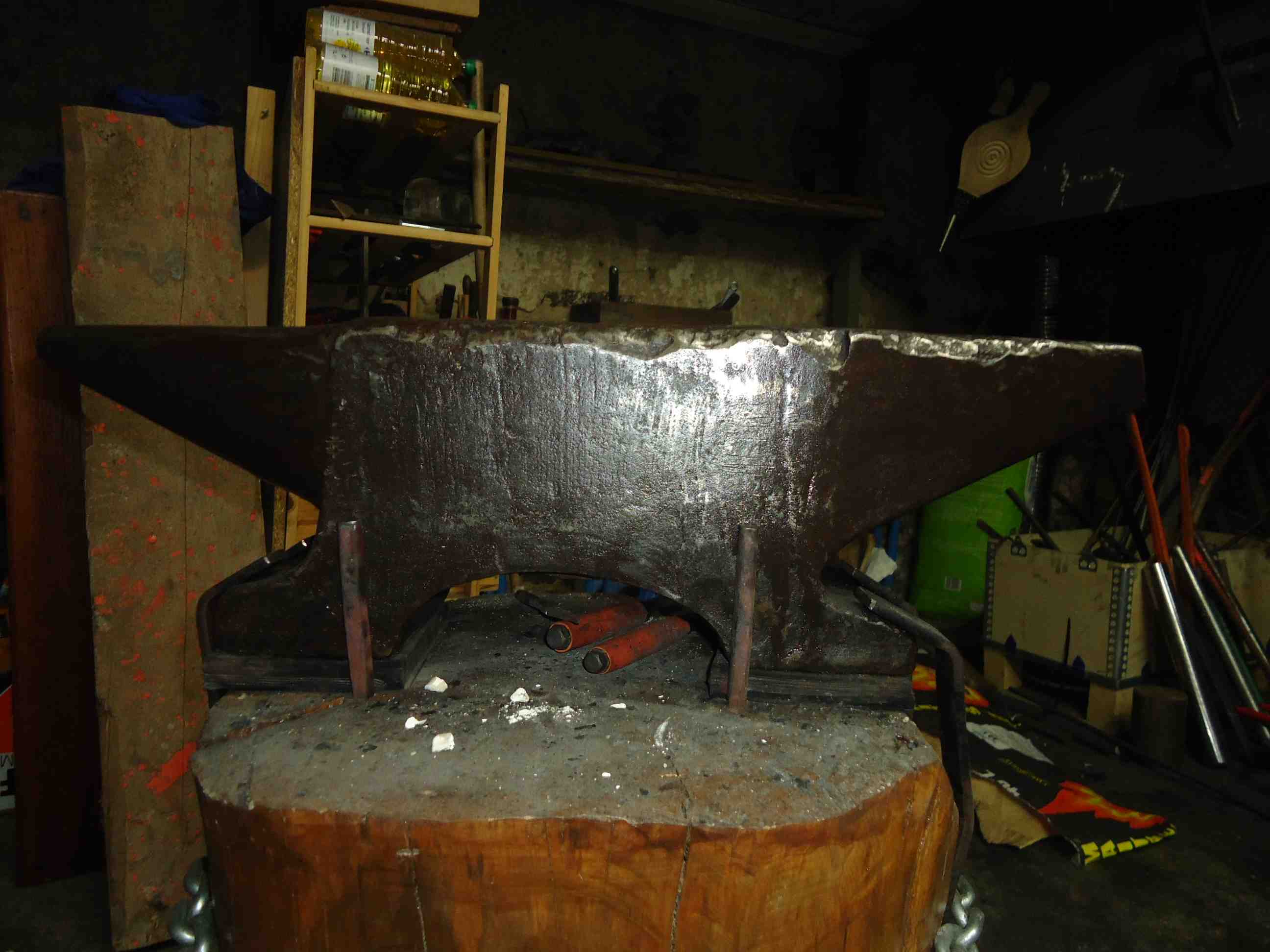 lorsque j'ai débuté la forge, j'ai tout naturellement cherché une enclume. J'en ai trouvé une (37 kg) chez un ferrailleur et tout à ma joie de faire une nouvelle acquisition, je ne me suis pas rendu compte que les nombreux coups qu'elle portait signifiait qu'elle était détrempée.