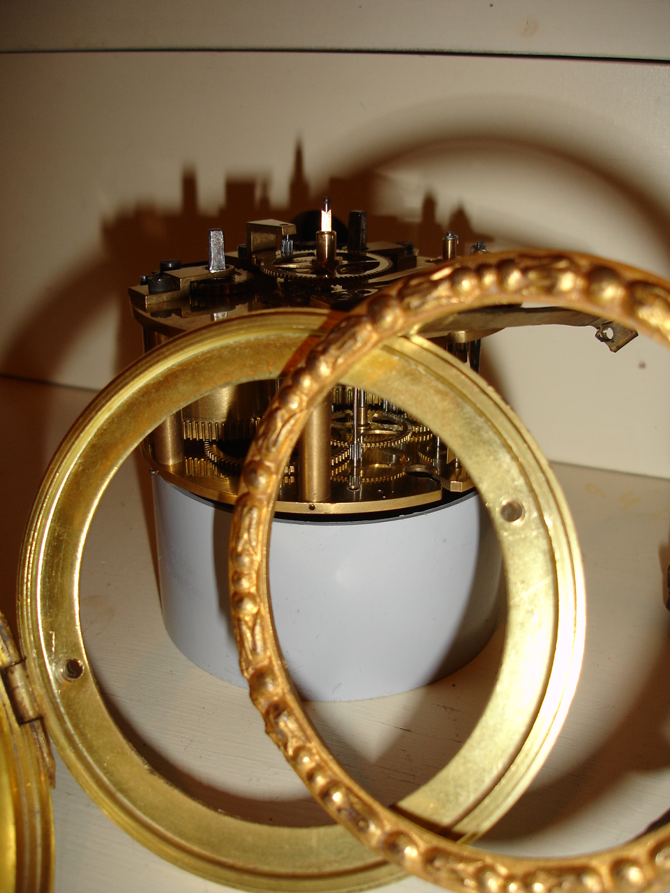 Je nettoie ces temps-ci une horloge avec un Mouvement de Paris. Elle est installée dans un support décoratif fin 19ème, en trois matériaux.